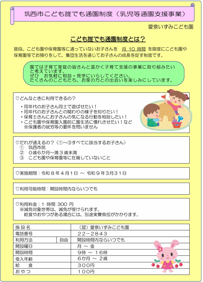 筑西市こども誰でも通園制度(乳児等通園支援事業)