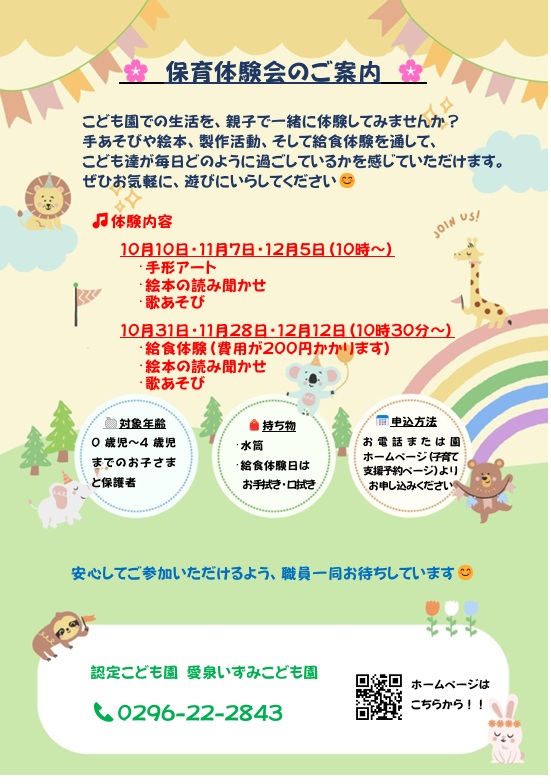 💛10月10日の保育体験 手形アートは定員になりましたので、申し訳ありませんが次回にお申込みください。💛